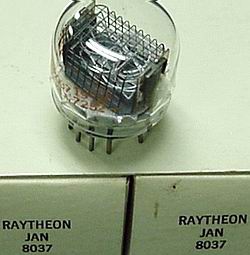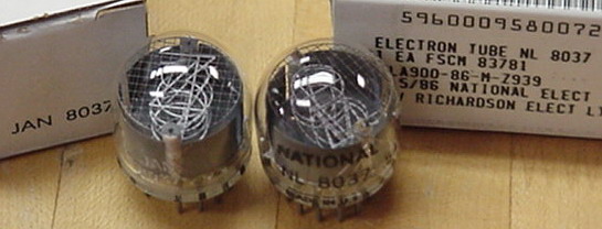![]() Top view, large digit NIXIE tubes, new MIL boxed tubes. We have both NL 8037 and JAN 8037, same price. Very versatile and high quality tube, can work in any of these popular tube locations: (B) 5031, 5092/A, 6844/A and 8421. Great for clocks.