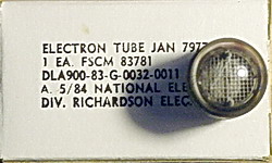 ![]() Top view, large digit NIXIE tubes, very popular type, Early factory boxed (uncommon!), large dia. 13 pin. These are new (old stock), boxed, tested. See also 8421 in list (same tube). We have SOCKETS for these tubes! | $25 Ea. |