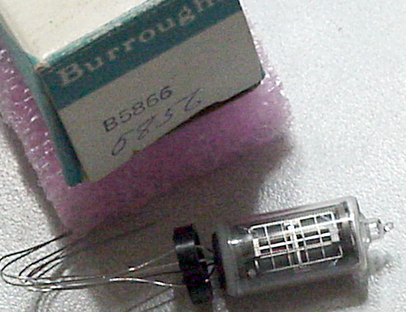 Top view, NIXIE tubes. Large characters, NO DP. NEW factory white boxed, test great. Compact spacing format. Same as mil 8422 tube, Burroughs B-5991 commercial tube, and HP 1970-0009. Every tube fully tested, known good. | Have 4 $22 Ea. |