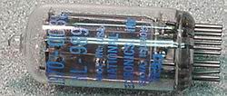 ![]() Top view, large digit NIXIE tubes, very popular type, used, very good condition, large dia. 13 pin. See also 8421 in list (same tube). This is a house numbered B-5092/A with Krypton 85 doping, has a slight pink tint. Excellent condition, fully tested. Some have both numbers, some only one number, all are the same tube. Uses the standard pinout. |