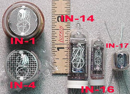 ![]() Top view, micro-miniature NIXIE tubes. Re-boxed (white boxed), look very good (new). | $20 Ea. |