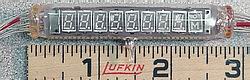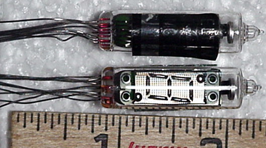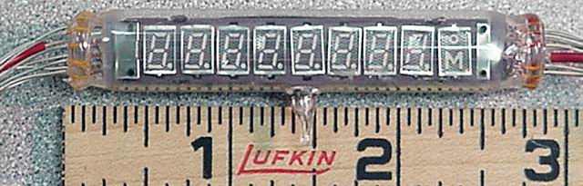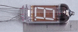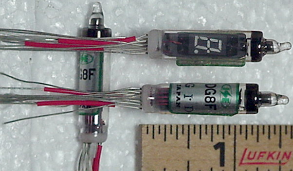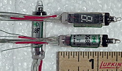 Vacuum Fluorescent DisplaysBrand new miniature Vacuum-Fluorescent segment-style digit display. RHDP style, flying leads. Very similar to tube shown, but not idential. | $15 Ea. |
