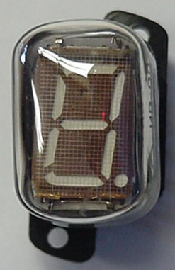 Horizontal view, stackable, planar segmented neon display, 1 digits plus r/h decimal/comma and colon (presumably for a clock display), 1.0 inch digit height. Very hard to find, used in many clocks and sunlight readable displays. These are clean pulls, and are tested. | $49 Ea. |