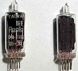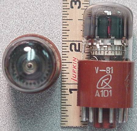 Every tube TESTED 100% IEE / ApolloVertical view, miniature size, filament type 7-segment tube with LHDP, solderable or plug into 10 pin round IC socket. Used, Apollo tubes with FLAT TOPS, every one 100% tested and inspected. Can be driven from conventional 7447 LED drivers, will display any color with filtering, great for clocks, no HV required, run from 3-5VDC. Very clean pulls, look and test very good, bagged. Same visually and functionally as RCA DR2100. Some may have writing partially removed from previous application. ![]() CLICK for base diagram | ![]() $8 Ea. 6/$45 |