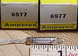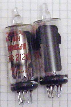 RCA Vertical view, full size, filament type 7-segment tube solderable, RHDP. New factory boxed. Can be driven from conventional 7447 LED drivers, will display any color with filtering, great for clocks, no HV required, , lower voltage tubes, run from 1.5-3.0VDC. Full factory data is HERE on our site. ![]() CLICK for base diagram | $25 Ea. |
