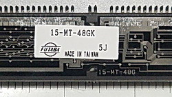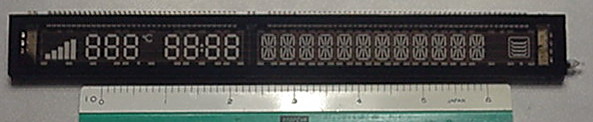 Futaba 15-MT-48GK Vacuum Fluorescent Displays Brand new 12+4+3-digit (+symbols and bargraph) multiplexed FIP Vacuum-Fluorescent Multi-digit displays (VFD). Appears to be some kind of custom appliance display, has a 12 character alpha section, 4 digit clock, and 3 digit temperature section, approx. 8.5 inches wide. Great display for experimenting, and VERY cheaply priced. Factory Packed in factory trays of 10. | ![]() Only $6 per display! $6 Ea. 10/$49 |