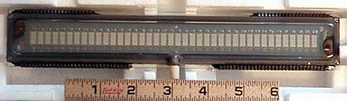 Itron/Noritake DC409-E2A Vacuum Fluorescent Displays Brand new Itron/Noritake, 40-character alpha-numeric multiplexed Vacuum-Fluorescent Multi-digit displays. Great for clocks, test gear, calculators, counters, all kinds of data displays, large 5x12 pixel, 3/8 inch tall characters. Overall glass length is 9 1/2 inches. Packed in factory bulk trays of 8 displays. Have the hard to find interconnect and electrical data HERE. | ![]() $29 Ea. 8/$195 |