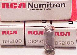 Every tube TESTED 100% RCA and National DR2010 Numitrons Vertical view, full size, filament type 7-segment full digit tube with LHDP, plug into 9 pin socket, or can be directly soldered (tinned pins). New tubes in excellent condition, 100% tested, RCA red factory boxed, National Red-black boxed and bulk white boxed. These have late rounded tops (6) and early flat tops. Can be driven from conventional 7447 LED drivers, will display any color with filtering, great for clocks, no HV required, run from 3-5VDC. Can also be used in DA2010/DR2000/DA2000 sockets with NO CHANGES. Very tough to find, took us quite a while to get more! Full factory data is HERE on our site. | $59 Ea. |