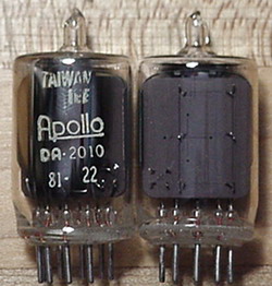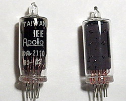 Every tube TESTED 100%Apollo Vertical view, full size, filament type 7-segment tube with LH decimal point, solderable or plug into 9 pin socket. NEW, factory boxed Apollo tubes every one 100% tested and inspected. Can be driven from conventional 7447 LED drivers, will display any color with filtering, great for clocks, no HV required, run from 3-5VDC. Same visually and functionally as RCA DR2010. Full factory data is HERE on our site. ![]() CLICK for base diagram | $49 Ea. |