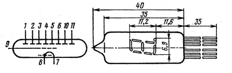 Sovtek IV-11 7-Segment VFD Displays CLICK HERE for PDF of Full Russian Data sheet with pin out and base diagram.