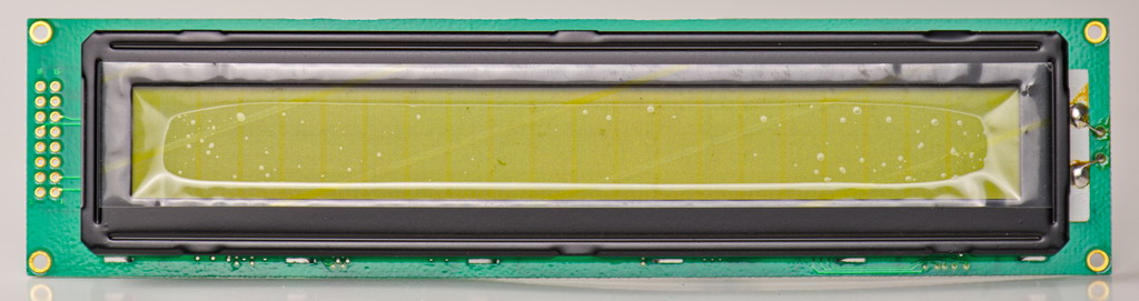 Varitronix MDLS201812-HT-HV-LED04-12 LCD Display New, 5x8 dot character matrix, 1 row of 20 characters. Active display area is 145mm wide by 17mm high, overall size is 169mm wide. Has yellow-green LED backlight (3-5VDC) via 2 pads or via 16 pin power/ I/F pad array. Parallel interface. Factory data is HERE. Have 18, $15 Ea. |