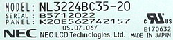 NEC NL3224BC35-20 Color LCD![]() ![]() FRONT, Click for bigger PIC! ![]() Back, CLICK for bigger PIC! |