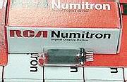 Every tube TESTED 100%RCA DR2020 Numitrons Vertical view, full size, filament type 7-segment tube with +/- and 1 digit, plug into 9 pin socket. Excellent condition, NEW factory boxed tubes, fully tested. Can be driven from conventional 7447 LED drivers, will display any color with filtering, great for clocks, no HV required, run from 3-5VDC. Full factory data is HERE on our site. ![]() CLICK for base diagram | $44 Ea. |