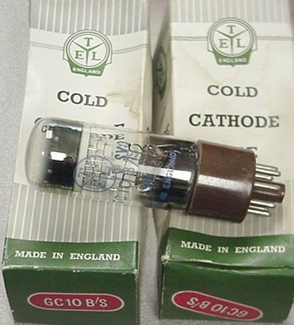 Neon Filled Dekatron DisplaysNew, boxed Ericsson Telephones Limited GC10B/S dekatron displays with octal bases, made in the UK. Used in many Baird Atomic radiation counters, and similar era lab equipment, an illuminated neon dot rotates around in a circle to display the count. Great for clocks, counters, all kinds of displays. New condition, all have good gas, and have been fully tested. CLICK HERE to see full data in PDF format! We have a schematic for a 110V/60Hz Spinner, and more data now on our web site HERE! | $45 Ea. |