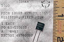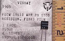 CLICK to visit VISHAY! 10K Precision Resistor 0.1% VISHAY, bulk metal foil precision resistor, very temperature stable, 10K, 0.1% tolerance, 0.6W. Very useful for quick tests in the lab, can be measured to high accuracy, will hold the value over time. 5ppm/degree C temperature stability, -55C to +125C operating range. Still sealed in mil packaging. New old stock. |