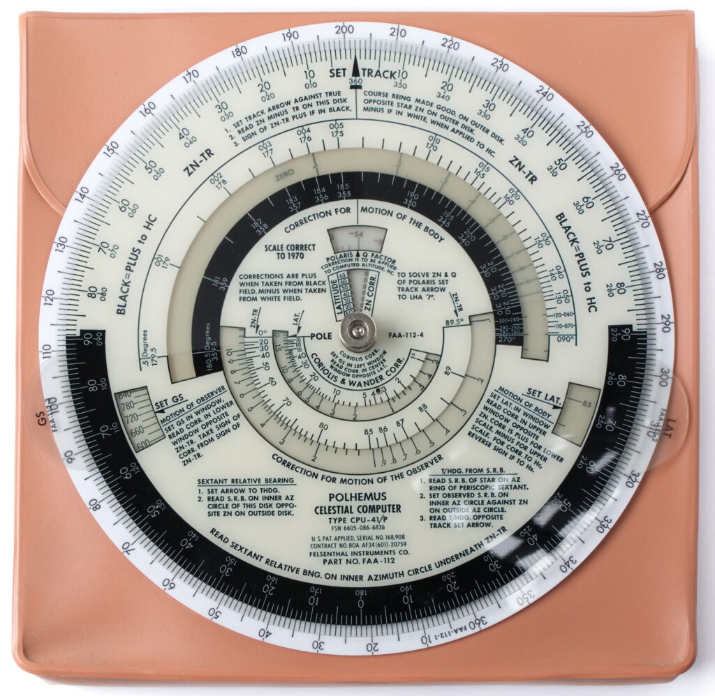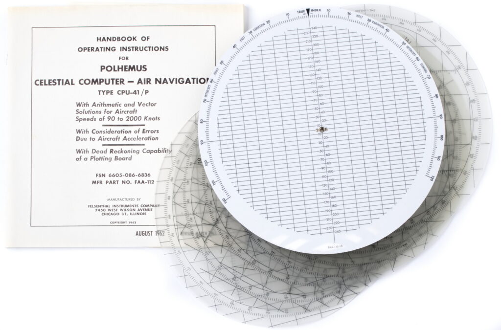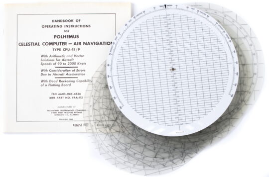 Don’t be caught in the cockpit without this device! Set comes complete with case, manual, multiple charts, and double sided circular slide rule.
