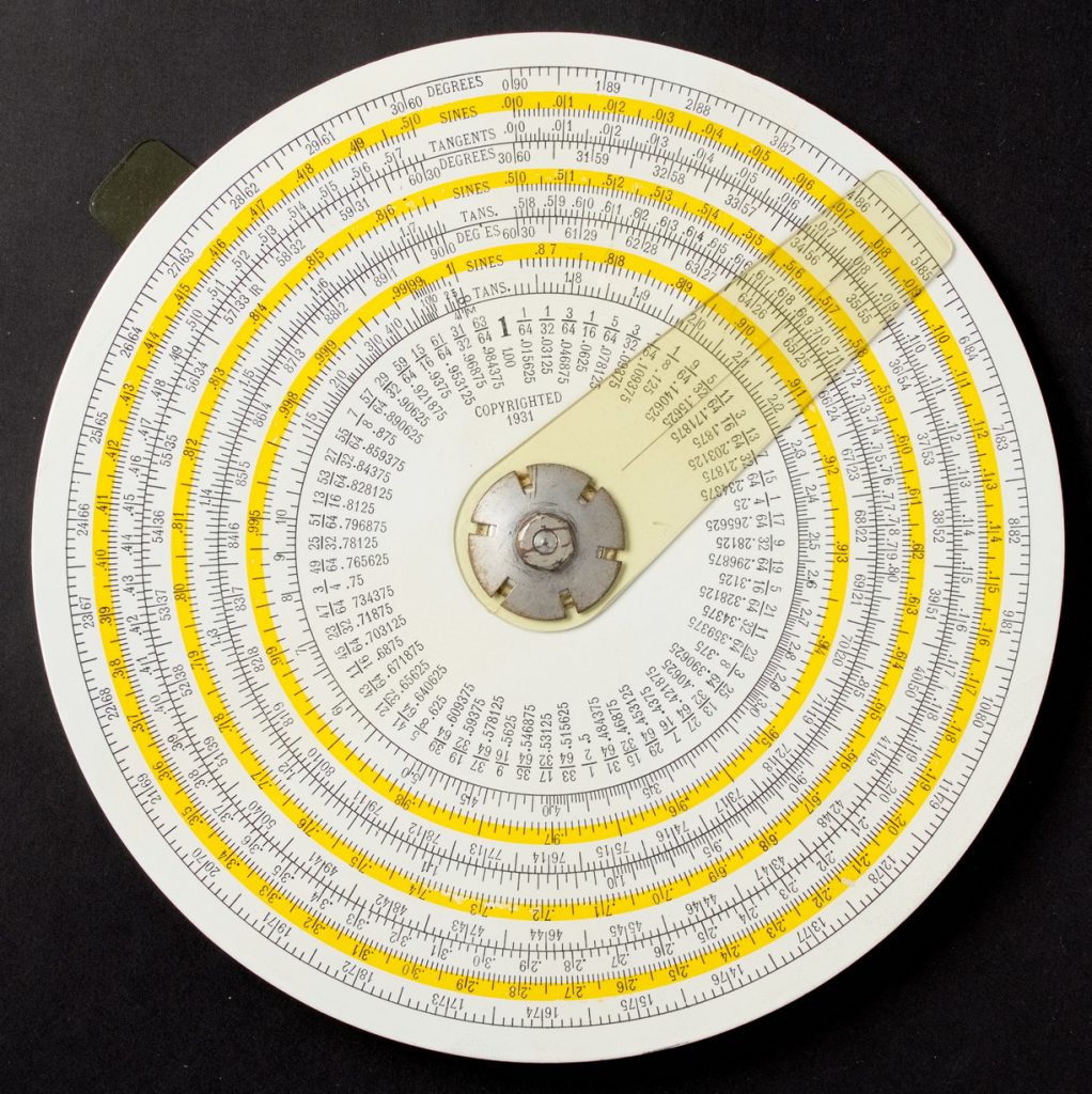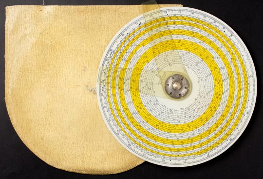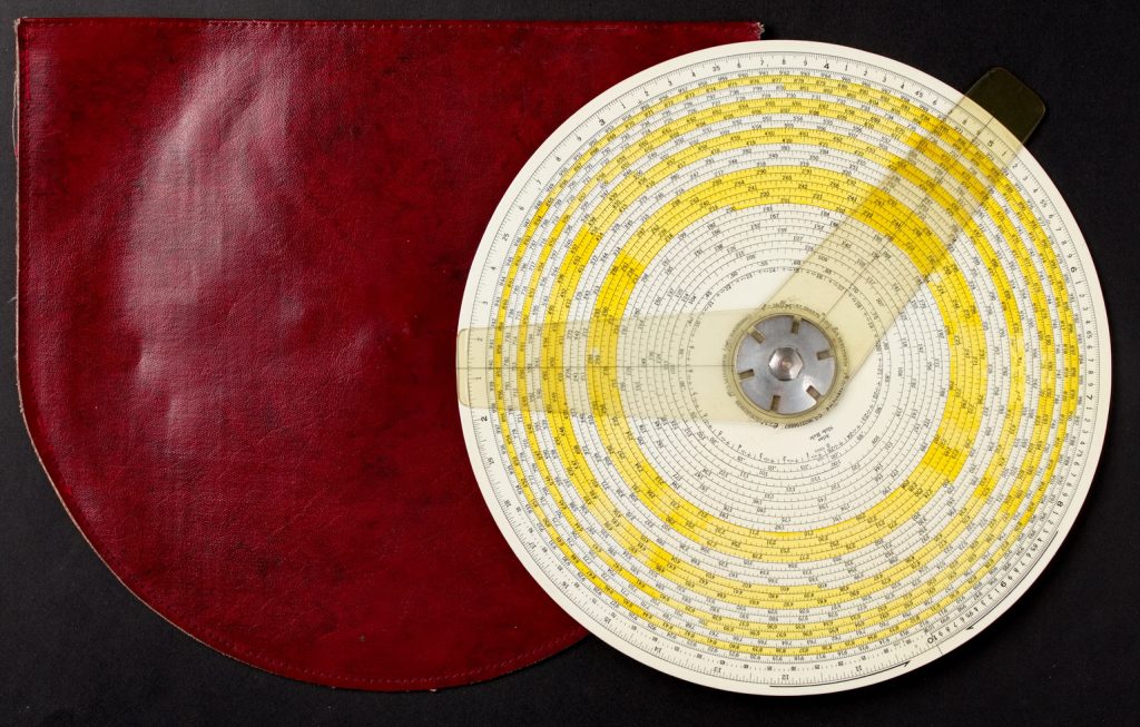 A more advanced, but still very clean looking and easy to read circular slide rule. Includes original vinyl slip case and instruction manual.