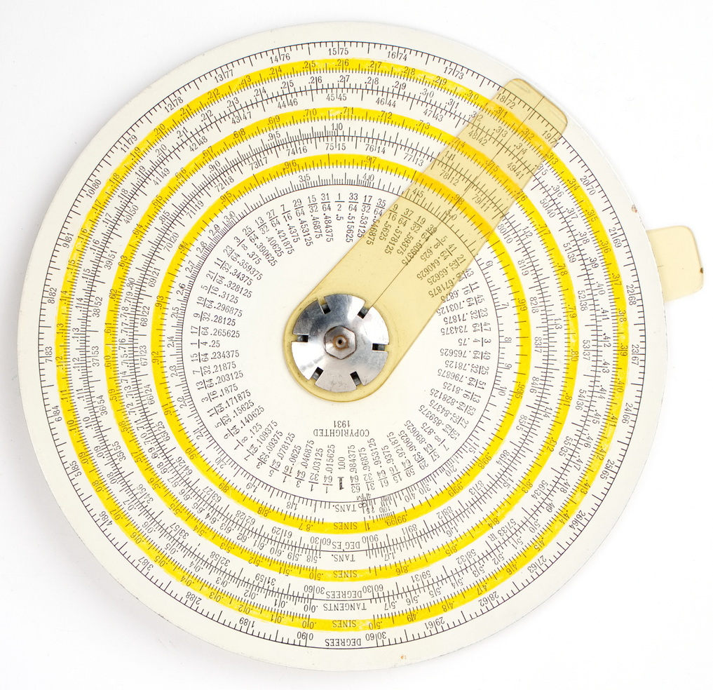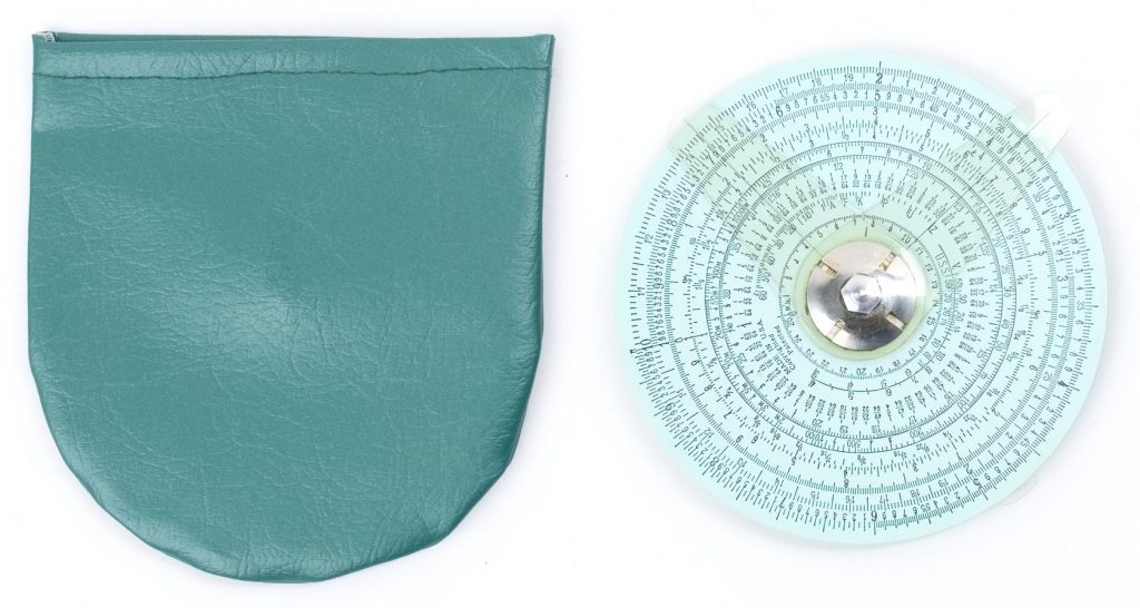 This is a single sided circular slide rule operated by using the two knobs on the top of the rule’s all metal casing. Some details on using these style of calculators can be found here. The Long Scale version of this calculator is specifically designed for use by engineers, draughtsman, and science students.