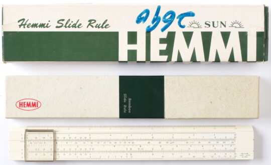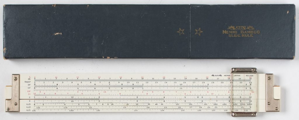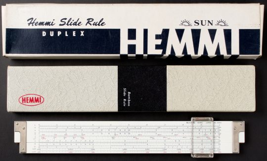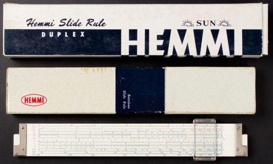 Log log duplex rule, similar to the POST Versalog, but with both A and B scales. Has folded and extended trig scales, and 8 log log scales. A very nice high end bamboo duplex rule, and one of Hemmi’s most popular models outside North America. This specific rule comes with the original factory box, and carton slide case instead of the leather case. THere is also one in stock with only the rule case and manual, but no box.