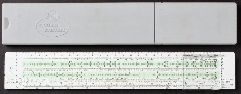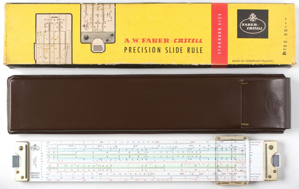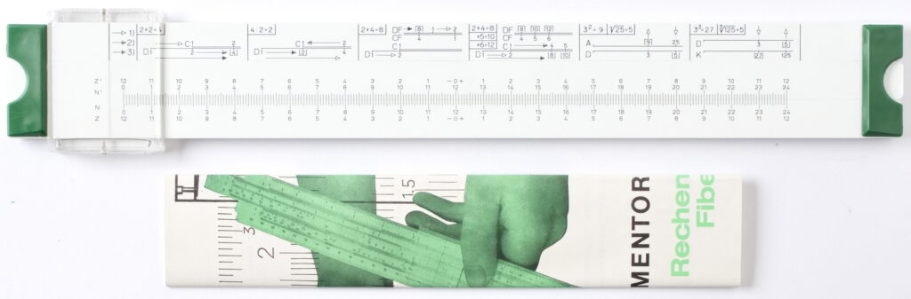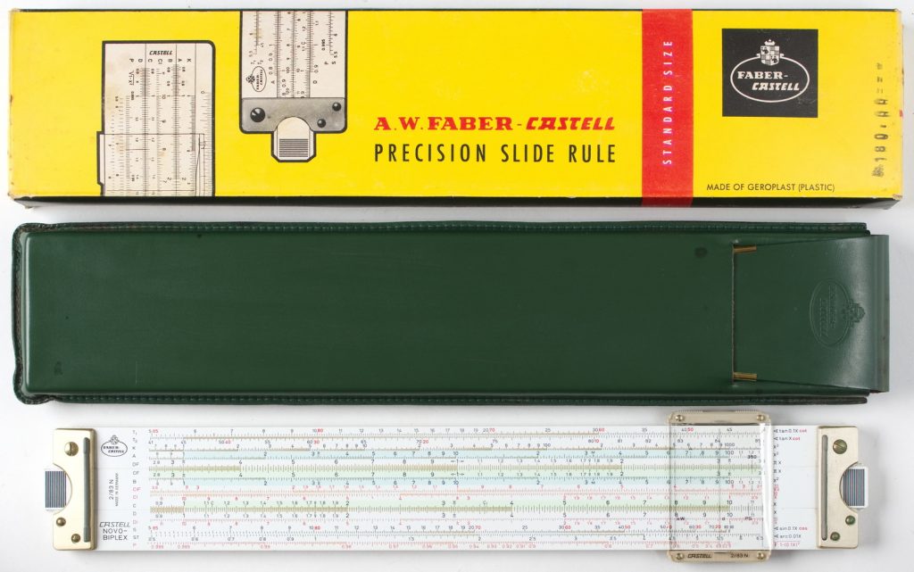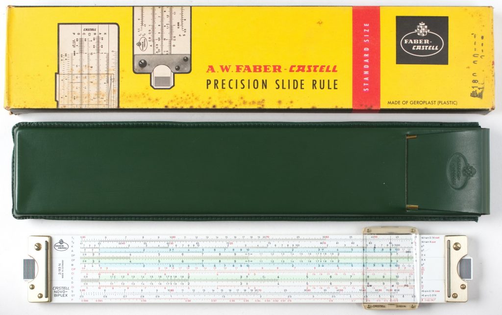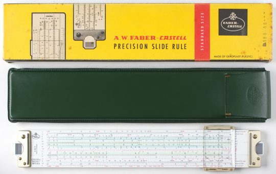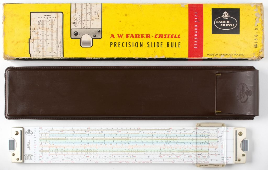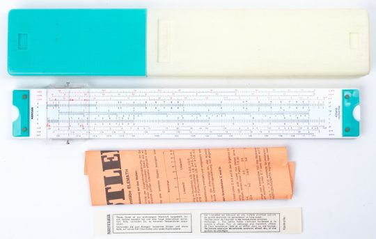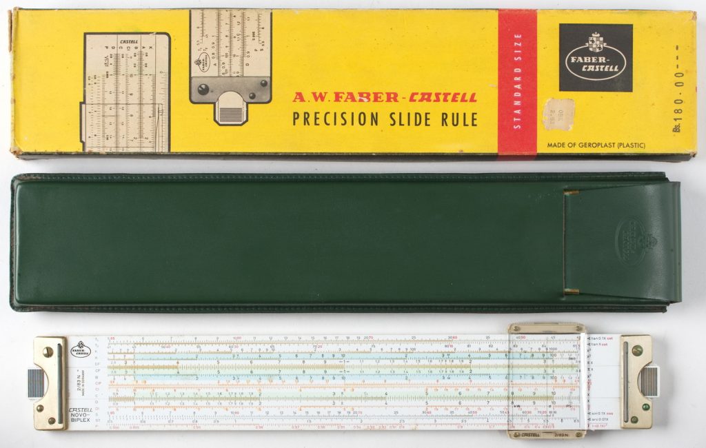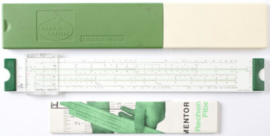 One of Faber Castell’s student/beginner rules for those learning to use a slide rule, but requiring robust functionality. Comes with the original clear plastic slip case, and English instruction manual.