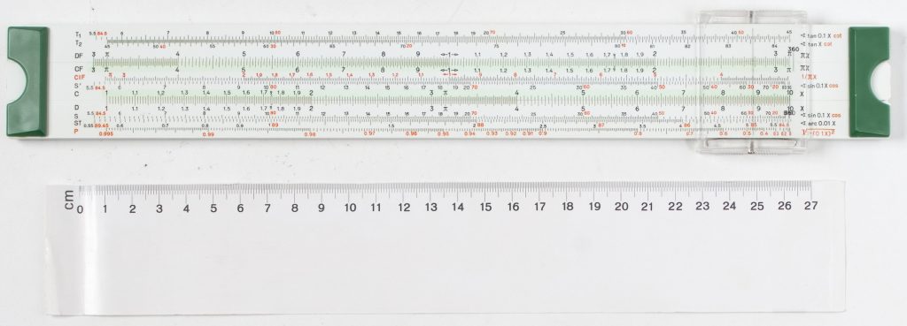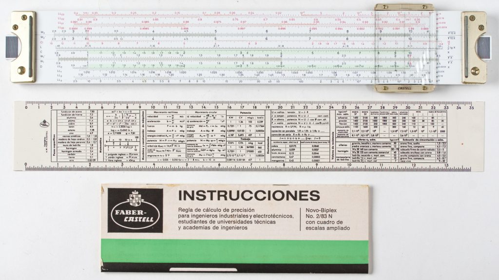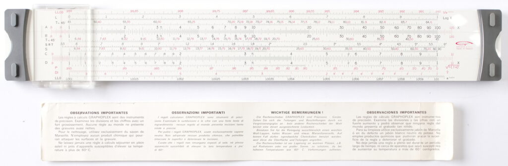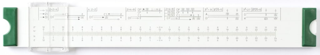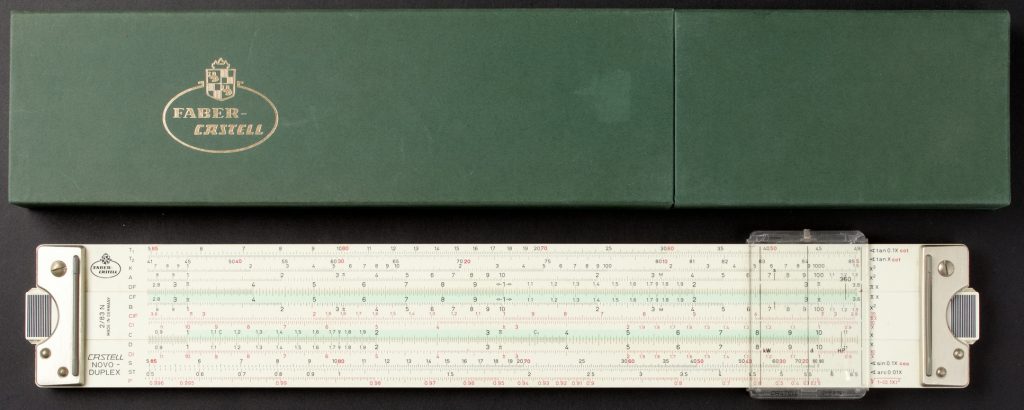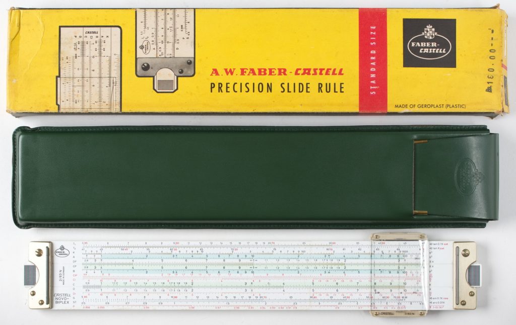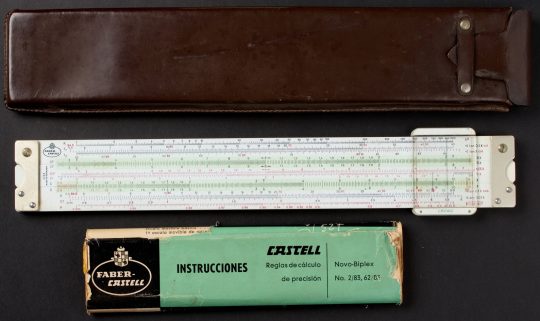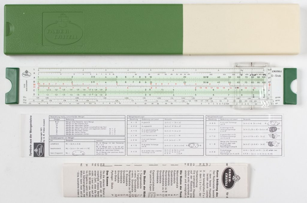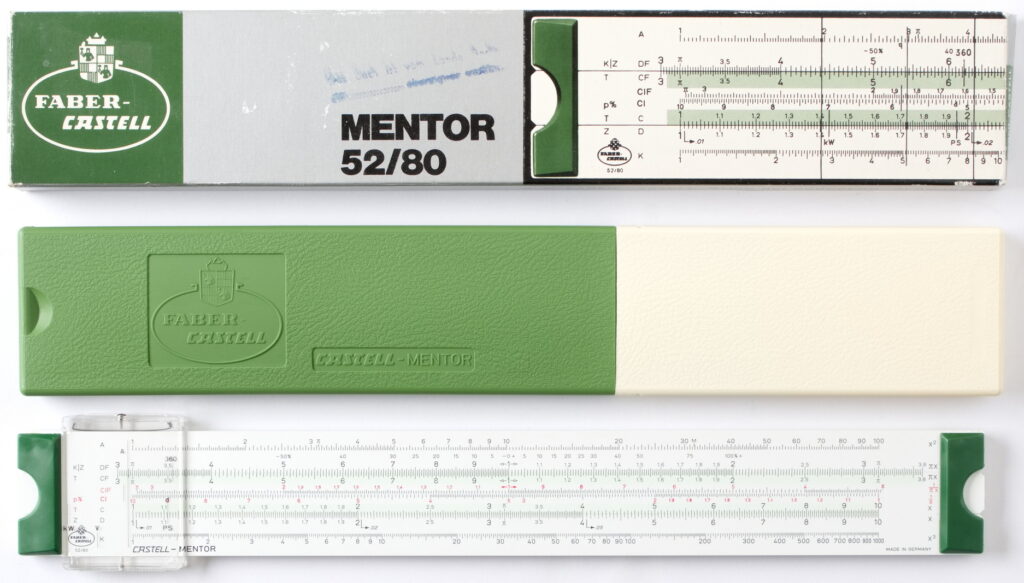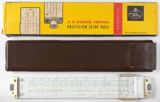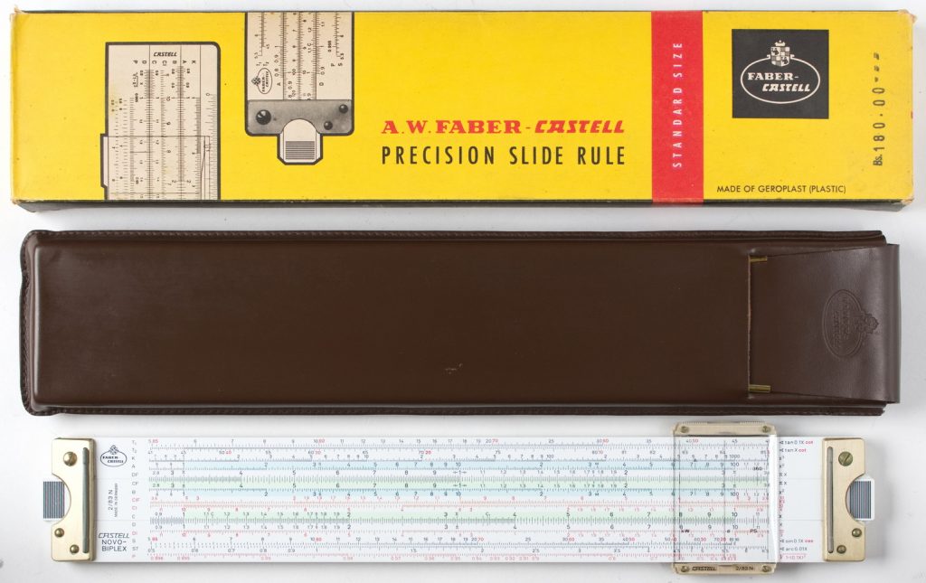 One of Faber Castell’s student/beginner rules for those learning to use a slide rule, but requiring robust functionality. Comes with the original clear plastic slip case, and English instruction manual.