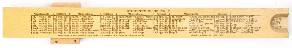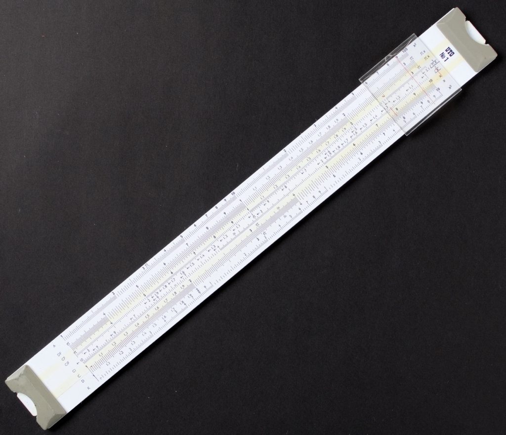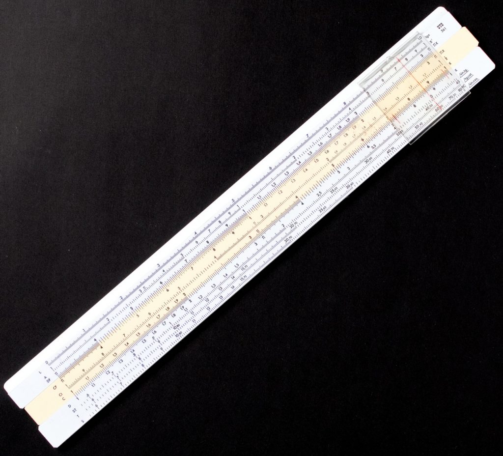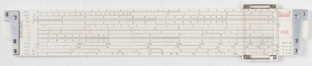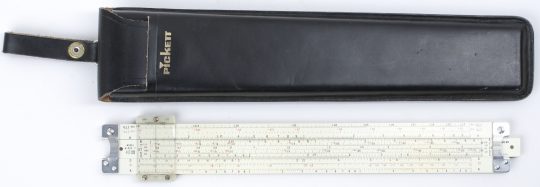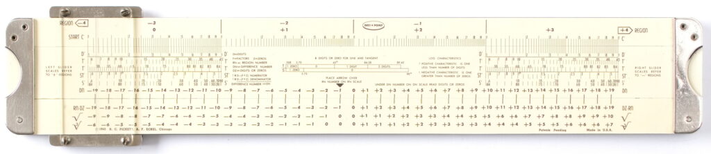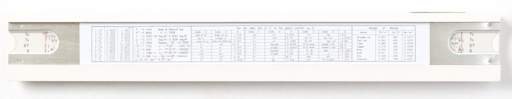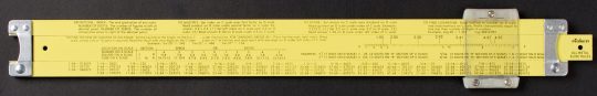 ES (Eye-Saver) Yellow aluminum construction, high-quality American made, Pickett rule. An excellent student rule with good trig capability, that never loses its instruction manual (it’s printed on the back).