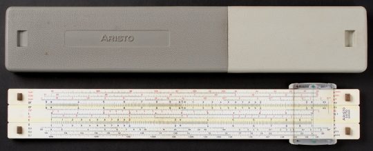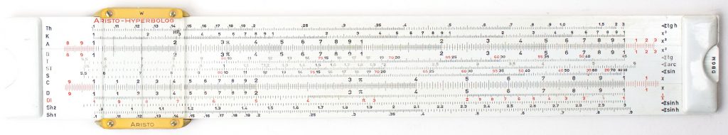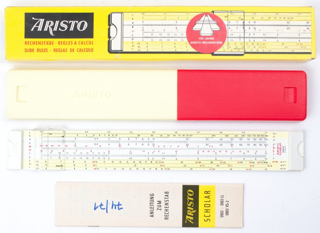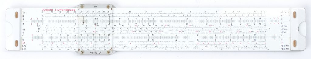 This is an advance 24 scale rule, that features feet on both sides of the rule for easy desktop use, and a cursor with 6 markers. As with most Aristo rules, it comes with black and red scales, as well as yellow bands on the slide for easier reading.