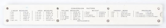 This all-metal 23-scale rule has some unique features. The reverse side of the rule features a split scale, with instructions outlined in the centre of the rule, and positive values read on the left end of the scale, and negative values on the right.