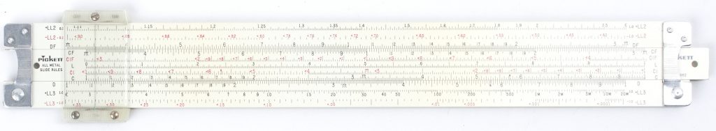 This is a very sophisticated Log Log rule, made in the trademark adjustable aluminum body format by Pickett, an enhanced N500/800 design with added scale features.
