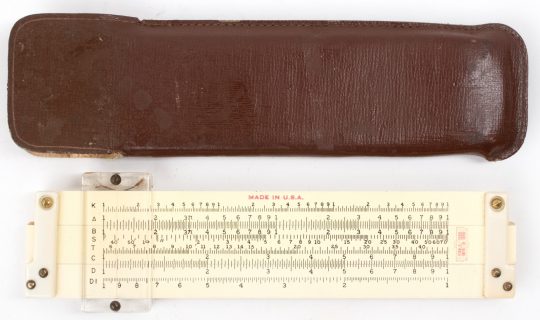 An economical and practical student rule for the beginner slide rule enthusiast! Plastic body, with contrast color slide for easier reading. Comes with a leatherette case.