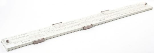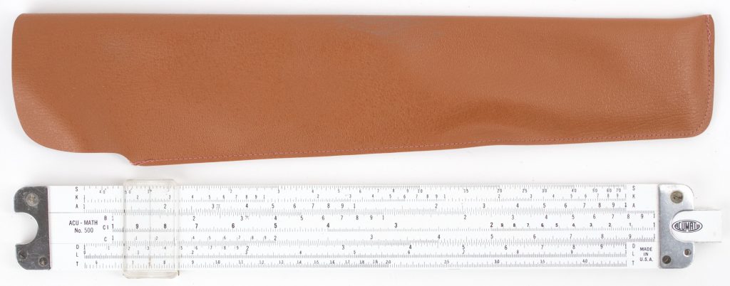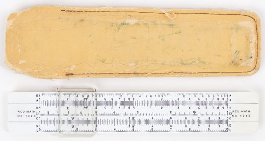 The Acumath 500 is a budget friendly, but still fairly capable rule, designed for students and those learning to use a slide rule. White plastic body with metal end braces, and the original plastic carry case.