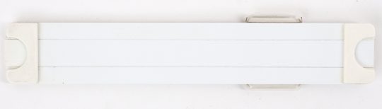 A clear and easy to read student rule, with yellow (taupe?) contrast bands on the rule for easier reading. Includes a leatherette case.