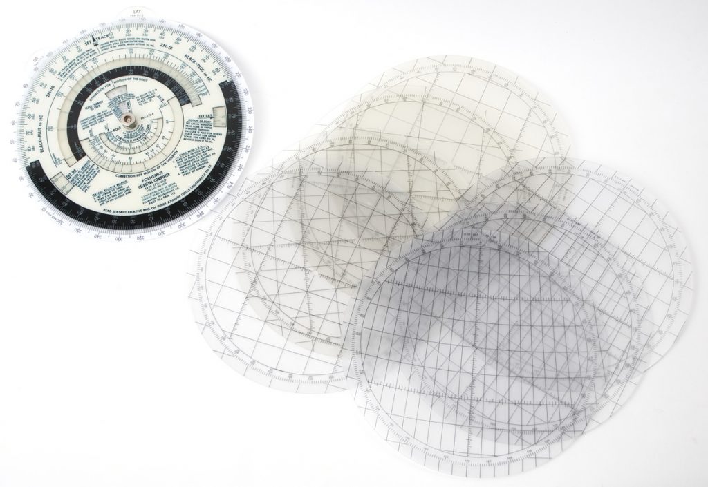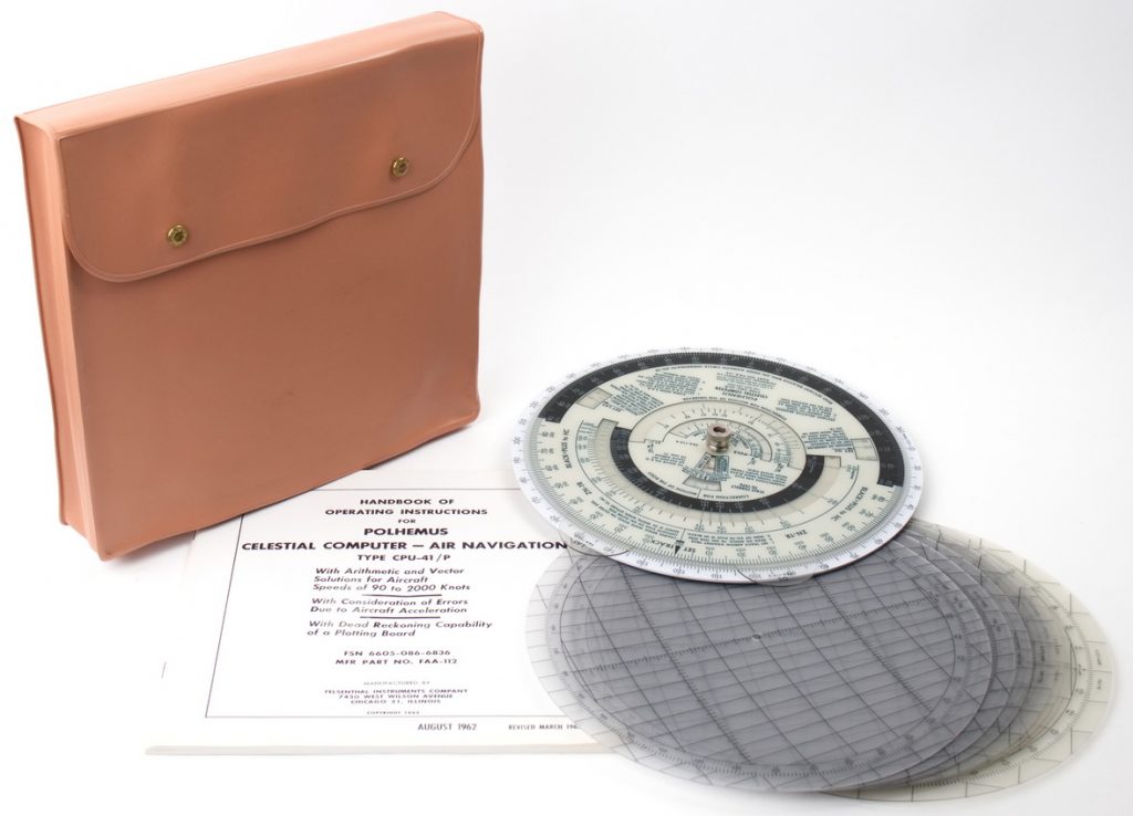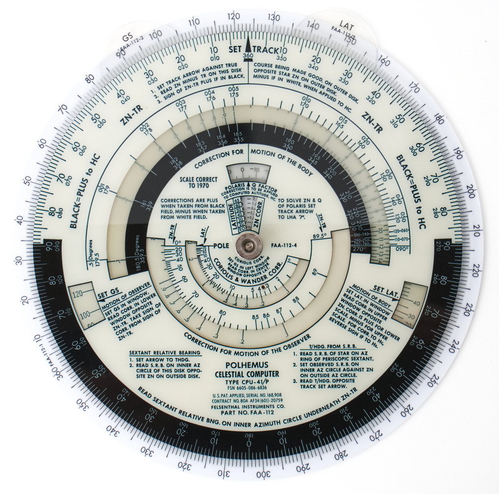 Polhemus Celestial Computer Type CPU-41/P, comes with original case, manuals, and 7 additional latitude discs.