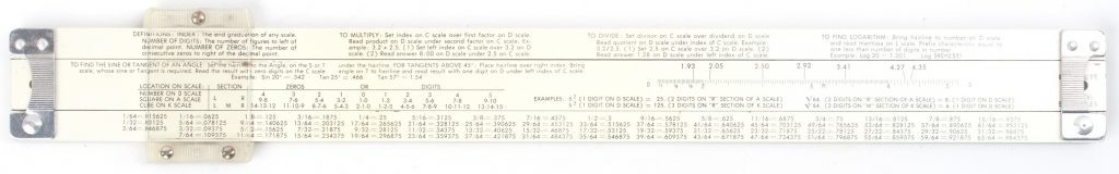 This rule exists in two formats, and later ones came without the special rear scales, and just a trig manual. An excellent student rule with the unusual ability to ADD and SUBTRACT, and do 20 decade calculations.