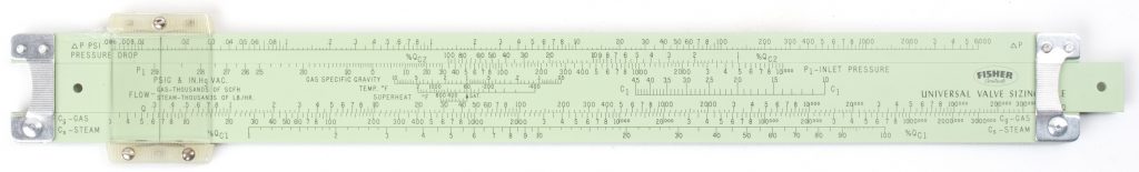 A specialised, full size, all metal rule made by Pickett for Fisher Controls.