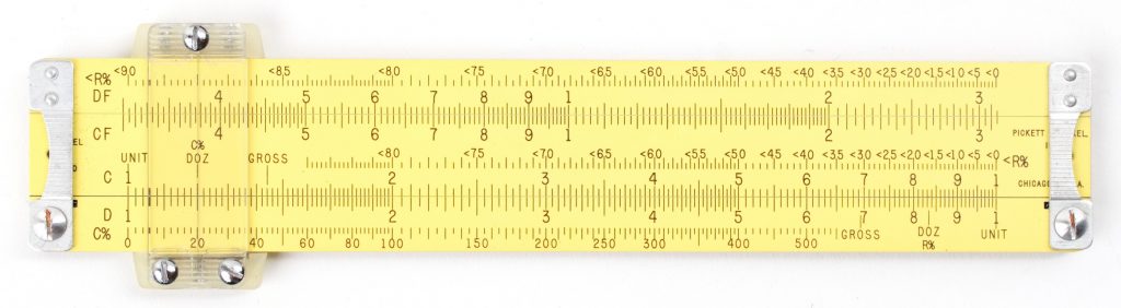 This is an extremely useful rule, made in the trademark aluminum body format by Pickett. Fortunately, all the special scales are SELF-DOCUMENTING on the right hand side, unusual for Pickett!