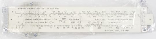 A practical, all aluminum, pocket commerce rule, new and in its factory plastic. Features calculation guide and specialized scales on the reverse side of the rule for performing ownership and cost calculations.