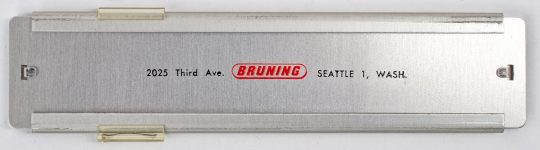 This is an unusual rule, with not many good examples circulating. It is a very basic nine scale rule that was most often used for promotional purposes, with all aluminum construction and a slide that is nearly the full width of the rule.