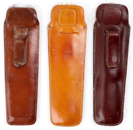 Includes original leather case, either with pull tab or clip case.
