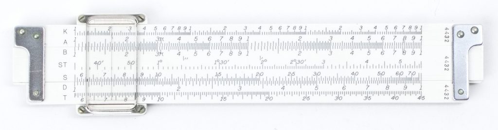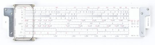 Front: – C, CI, A, K, L, Log Log (1.0015-1,000,000), fractions, fractions, drill/thread, mm