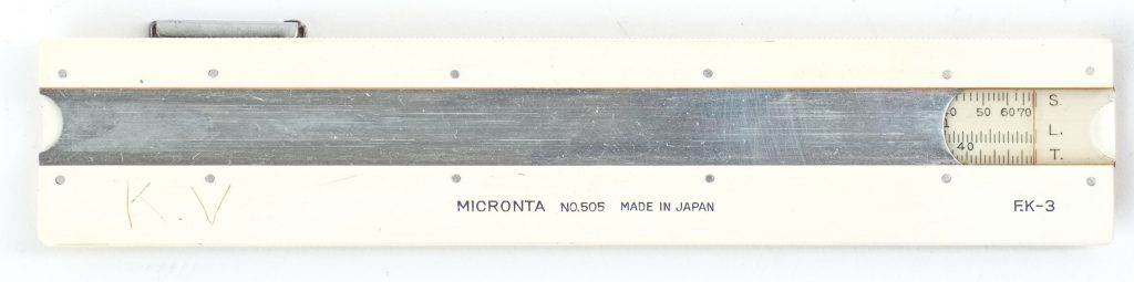 This 6″ K&E simplex rule features 9 scales, and both imperial and metric rulers on the reverse side.